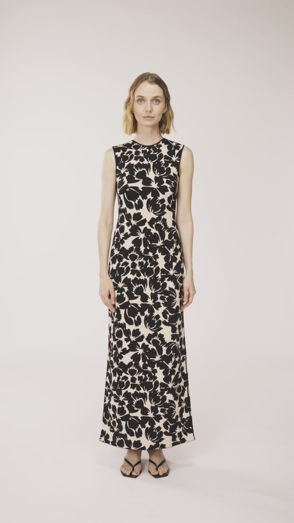 The Lia Dress features a sleek, long, sleeveless design with a form-fitting silhouette and a stylish print. This dress elegantly hugs your curves, offering a chic and sophisticated look that's perfect for any special occasion.